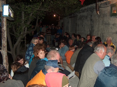 Prima di rompere le righe viene chiesto ai pellegrini di entrare nel piccolo ufficio improvvisato per l'occasione, per apporre la propria firma su un quaderno a testimonianza della propria presenza e per lasciare una piccola quata di partecipazione utilizzata dalla commissione per soli fini organizzativi. A questo punto i pellegrini si preparano per la notte, molti decidono di portarsi le tende da campeggio che montano sui terreni circostanti che i proprietari danno gentilmente in concessione per l'occasione,